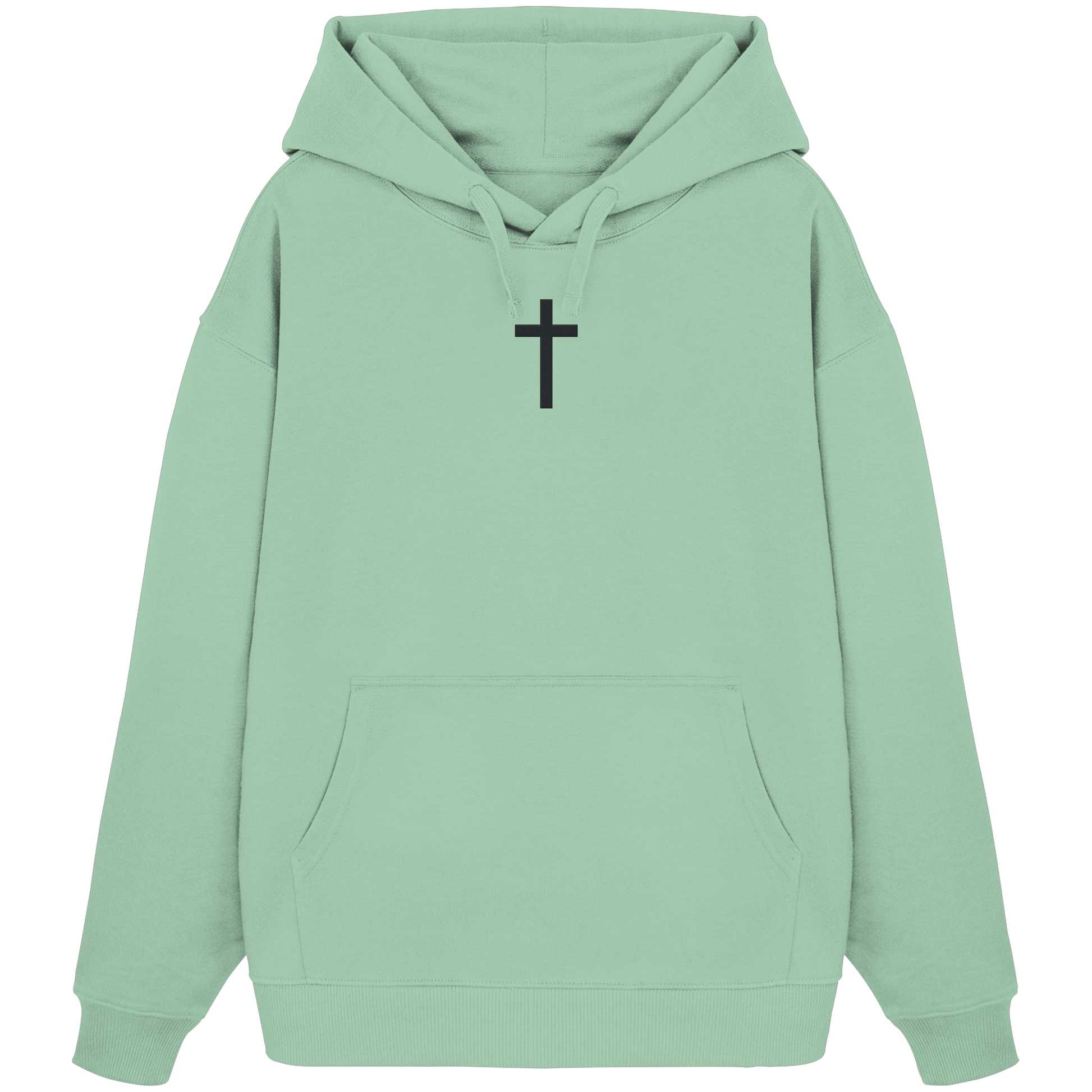 Dieser Premium Oversized Hoodie bringt Glauben in deinen Streetwear-Style. Die zentral platzierte Kreuz-Stickerei steht für deine Überzeugung, der Oversized-Schnitt für modernen Urban-Style. Für alle, die ein klares Statement ohne viele Worte setzen wollen.